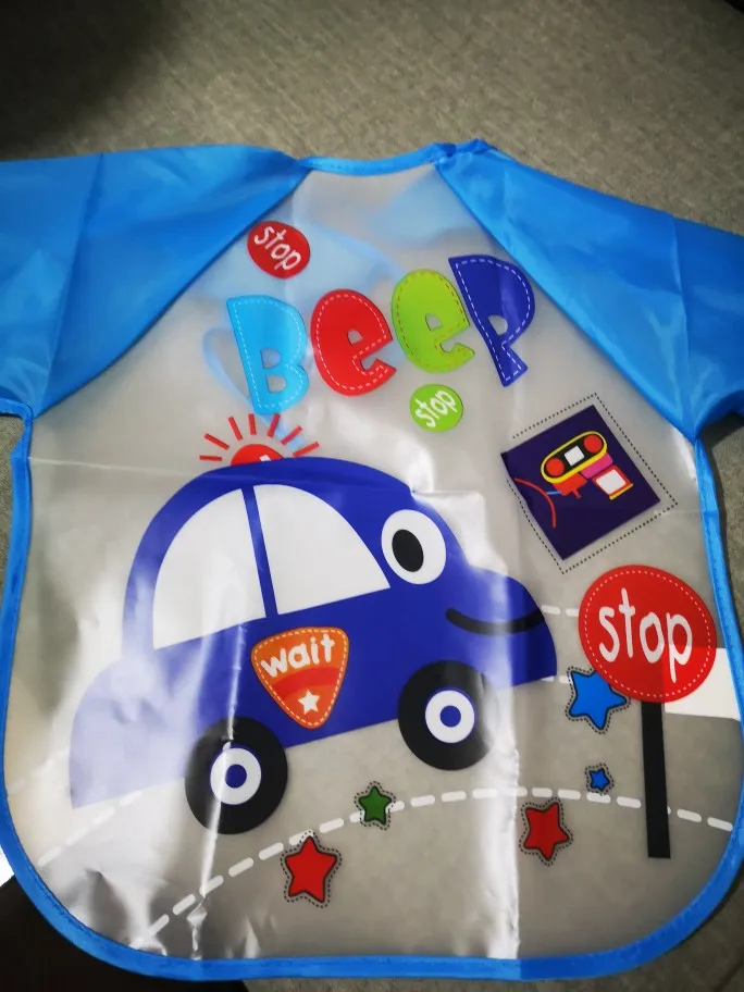 1. Maniche Integrate: Dimentica le preoccupazioni per le maniche sporche! Il nostro bavaglione è dotato di maniche integrate per proteggere le braccine del tuo bambino, garantendo una copertura completa durante il pasto.