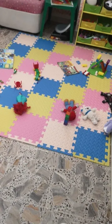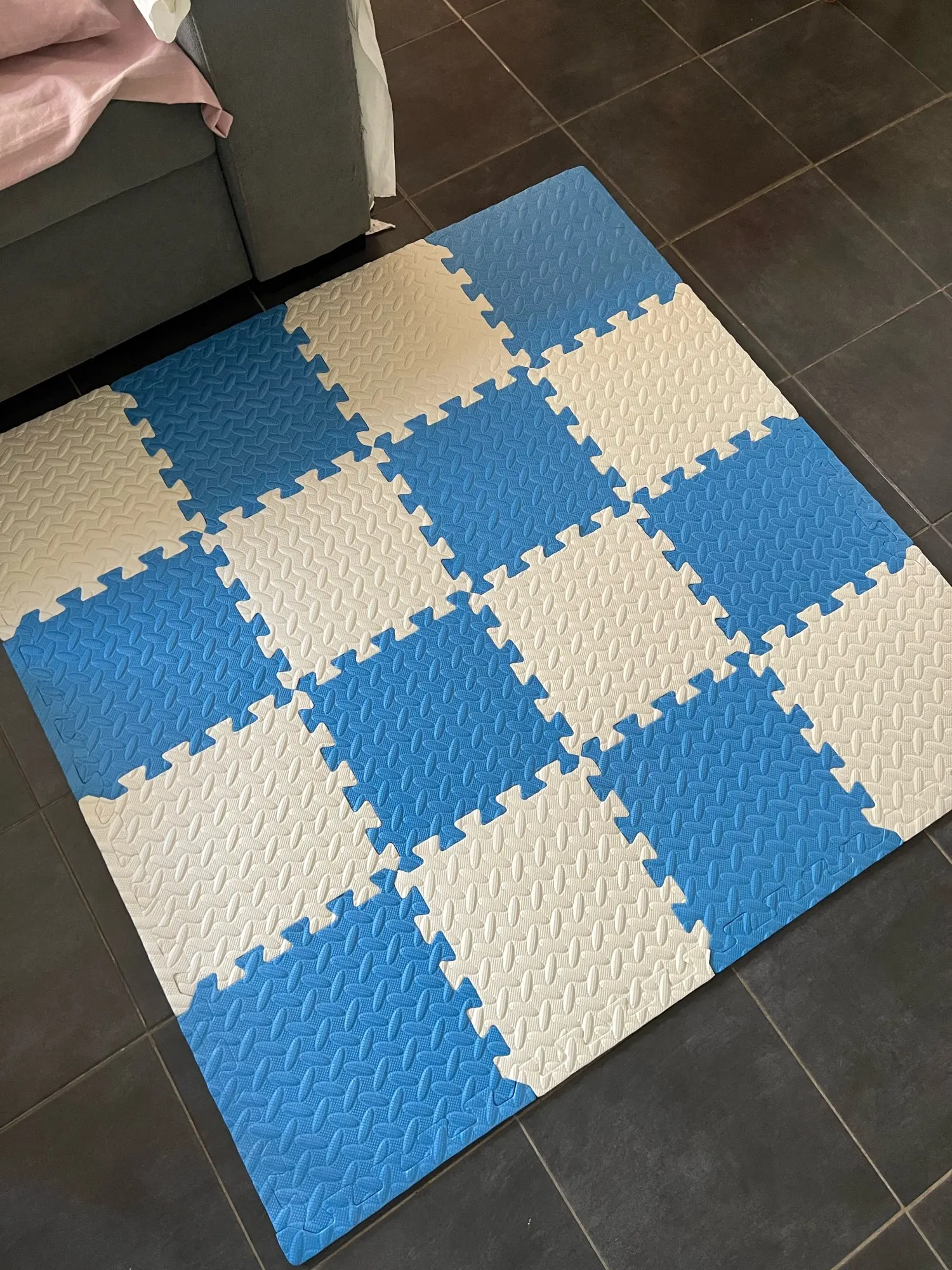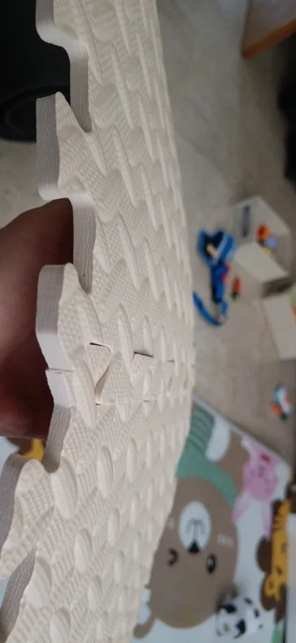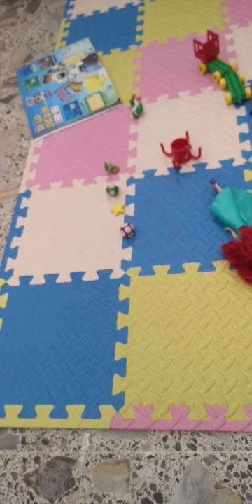 Prodotto eccellente, mio figlio ha adorato il tappetino. È il secondo acquisto, è stato effettuato l'8 febbraio, lo hanno inviato separatamente in 2 pacchi, il primo è arrivato il 18 febbraio e il secondo il 22 febbraio entrambi entro i tempi di consegna. È stato utilizzato per ampliare l'area del reparto e un'altra parte è stata utilizzata per un lato del letto. I colori vanno bene, anche se il bianco è più simile a un colore avorio, ma non influisce. È l'area giochi del mio ragazzo, che è stato affascinato dalla possibilità di condividere lo spazio con suo padre.
