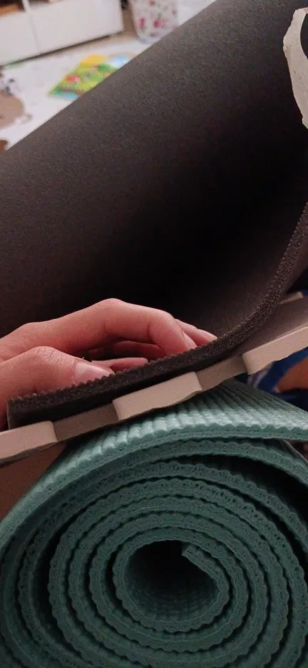 Spessa 1cm, più di tappeto classico per palestra e anche il tappeto per yoga. L'unica pecca è che sono piccoli, 30cm x 30cm calcolate bene le misure che vi servono.