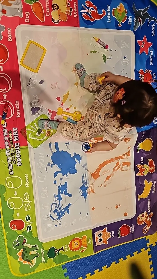 💧 Senza Macchie: Grazie alla penna ad acqua, i bambini possono colorare il tappeto magico senza creare disordini o macchie, rendendo il gioco sicuro e privo di stress per i genitori.