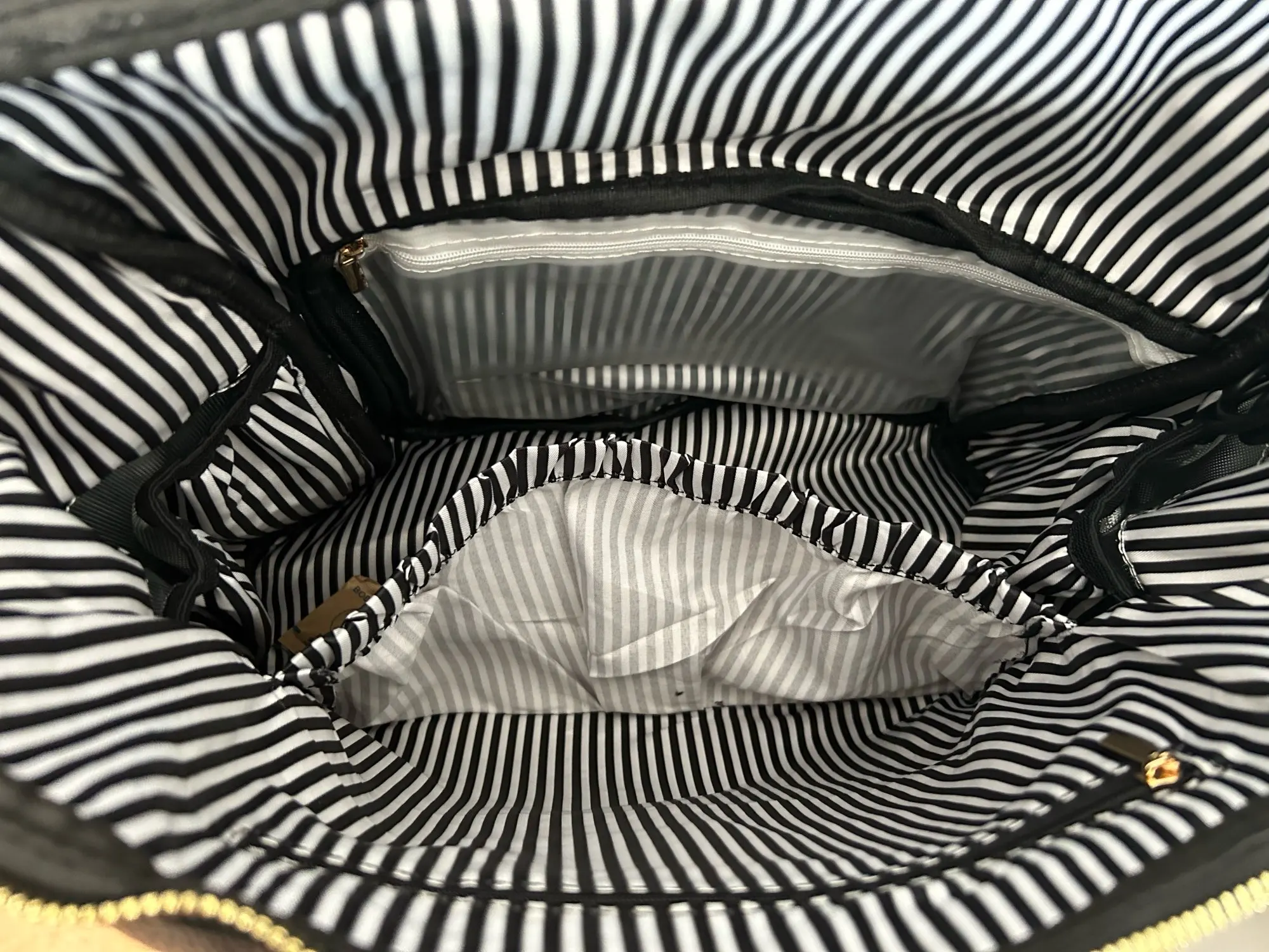 Composizione intelligente: Questo fantastico zaino contiene una presa per il cavo USB che ti permette di caricare il tuo cellulare/tablet mentre sei in giro col tuo baby!